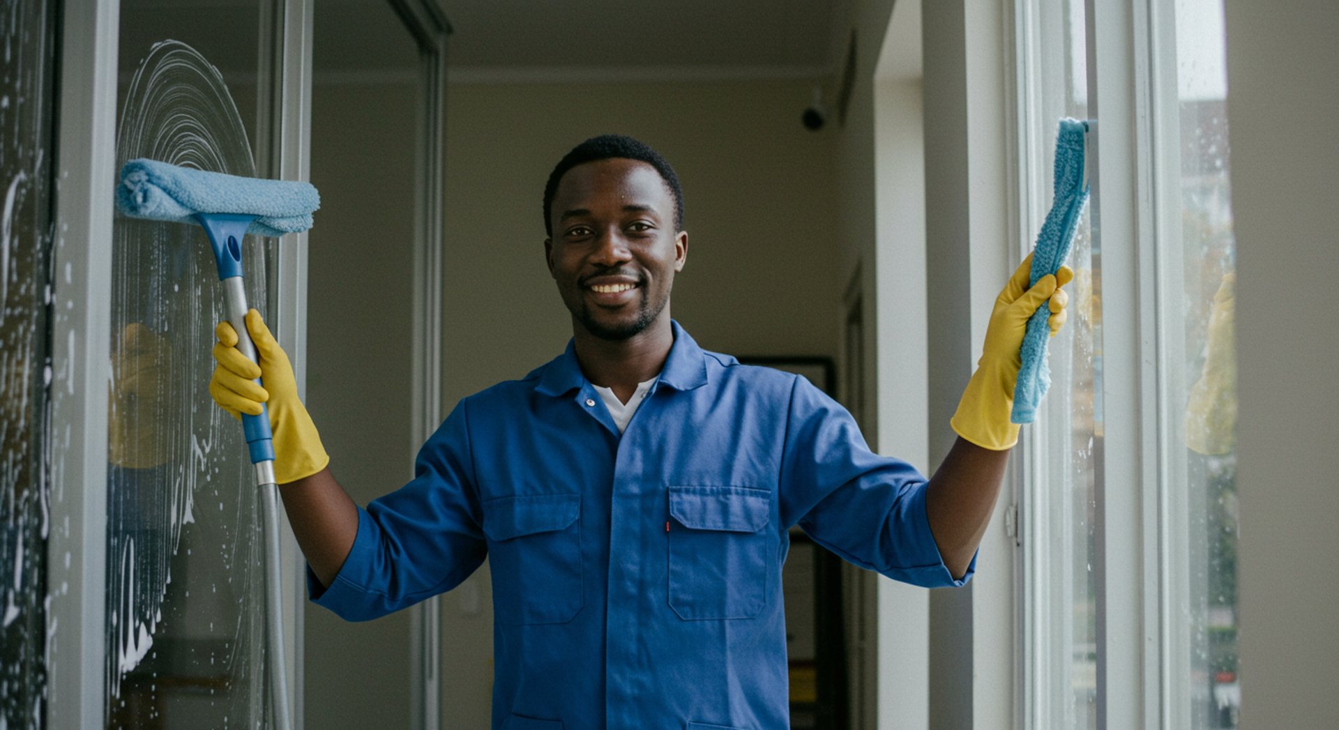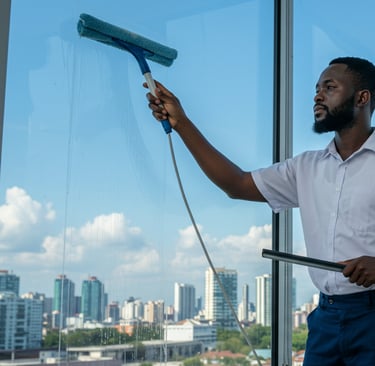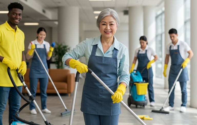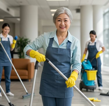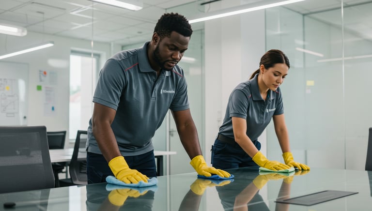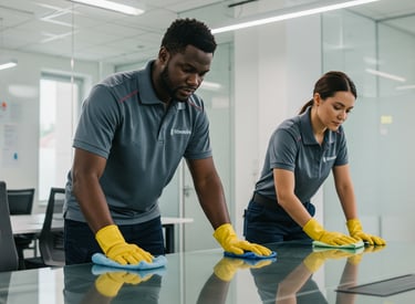 Professional cleaning for offices and businesses, promoting a clean workspace for productivity.